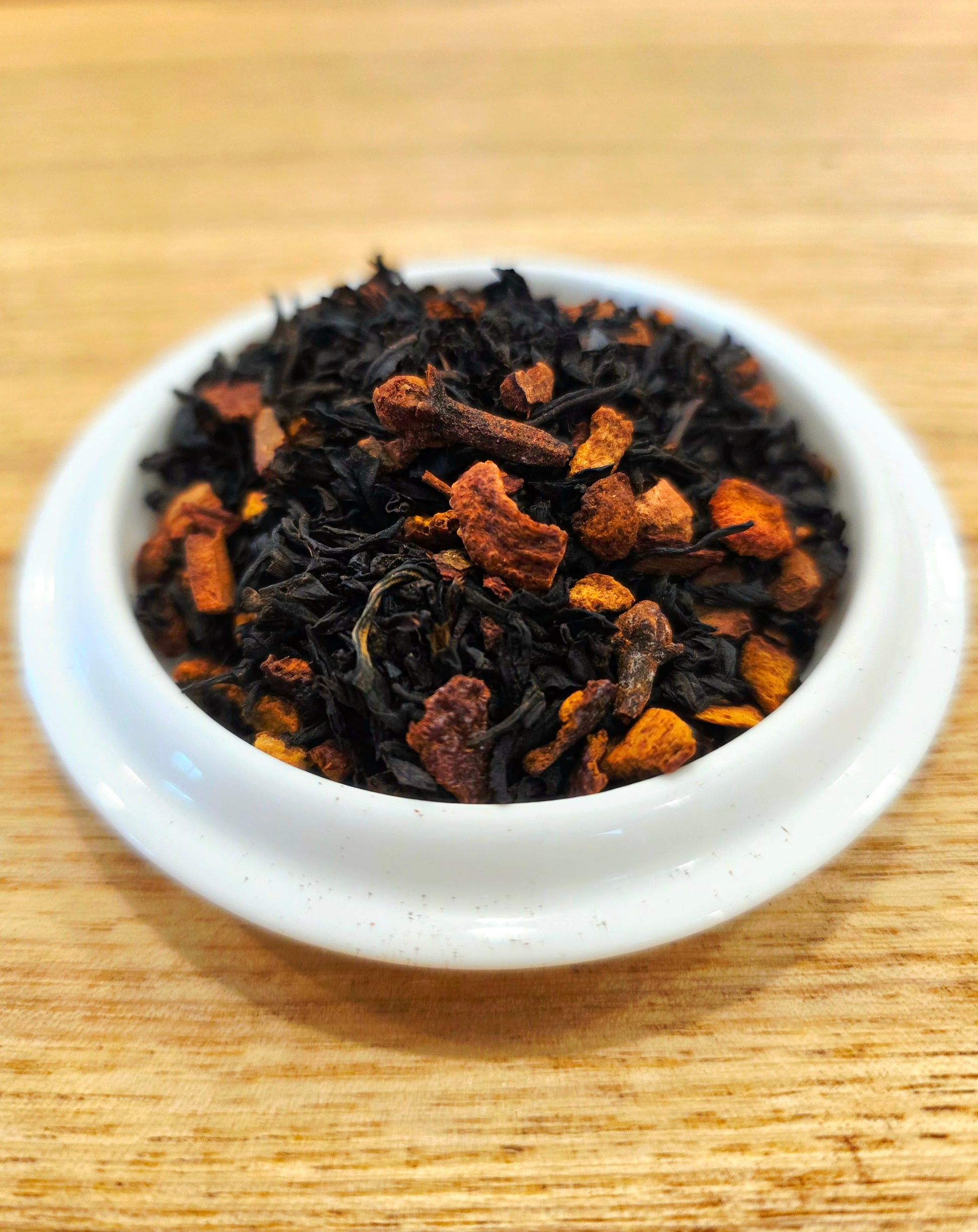 A seasonal indulgence with very limited availability, our Cinnamon Fireball loose leaf tea is a blend of black teas, cinnamon, orange peel, clove and Saigon cinnamon. It packs a flavor punch with its sweet and spicy blend that satisfies both taste buds and your mind. A great daytime brew or a cozy nighttime treat.